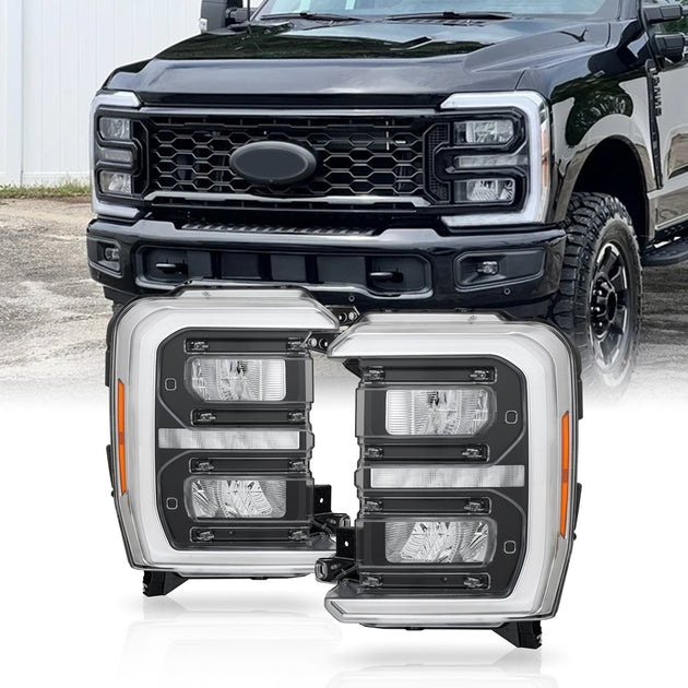 AKKON - Fits 2023-2025 Ford F250 F350 F450 SuperDuty [Halogen Type] Chrome Headlights Pair Driver Left+Passenger Right