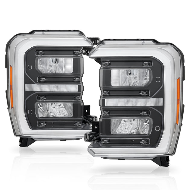 AKKON - Fits 2023-2025 Ford F250 F350 SuperDuty Full LED Black Headlights Pair Driver+Passenger w/LED Reflector Tube DRL