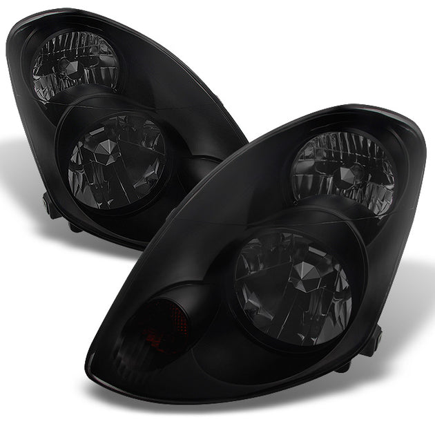 AKKON - Fits G35 Sedan Halogen Type Black Smoked Headlights Replacement Driver Left + Passenger Right Pair