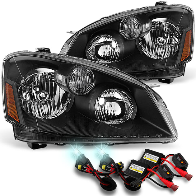 AKKON - Fits Altima Halogen Type Euro Black Headlights Replacement Left + Right Pair + Slim 8000K HID Kit