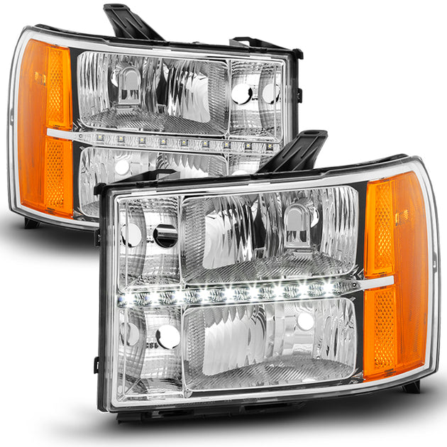 AKKON - For 07-13 Sierra 1500 07-14 2500 3500 Chrome Clear LED Headlights Lamps Direct Replacement Left + Right