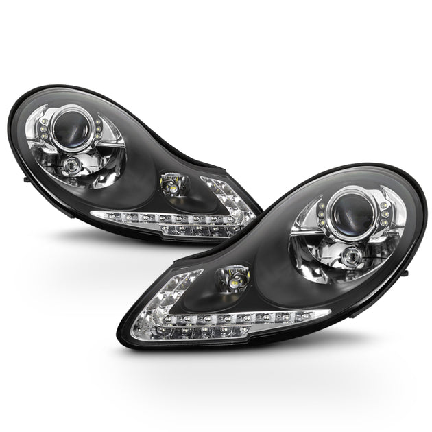 AKKON - For 1997-2004 Porsche Boxster 986 911 996 LED Signal Projector Both Side Headlights Headlamps - Black