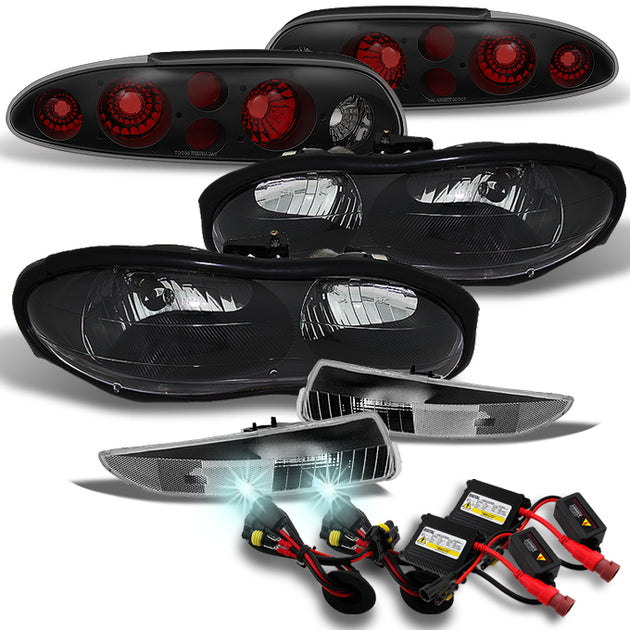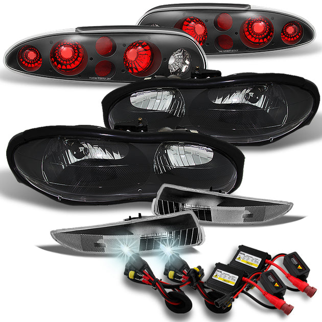 AKKON - For 1998 1999 2000 2001 2002 Camaro Black Headlights + Bumper Lights + Black Tail Lights + 6000K HID Kit