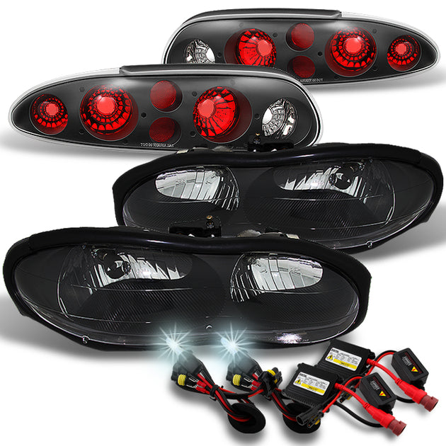 AKKON - For 1998 1999 2000 2001 2002 Chevy Camaro LH + RH Black Head Lights + Black Tail Lights Pair + 6000K HID