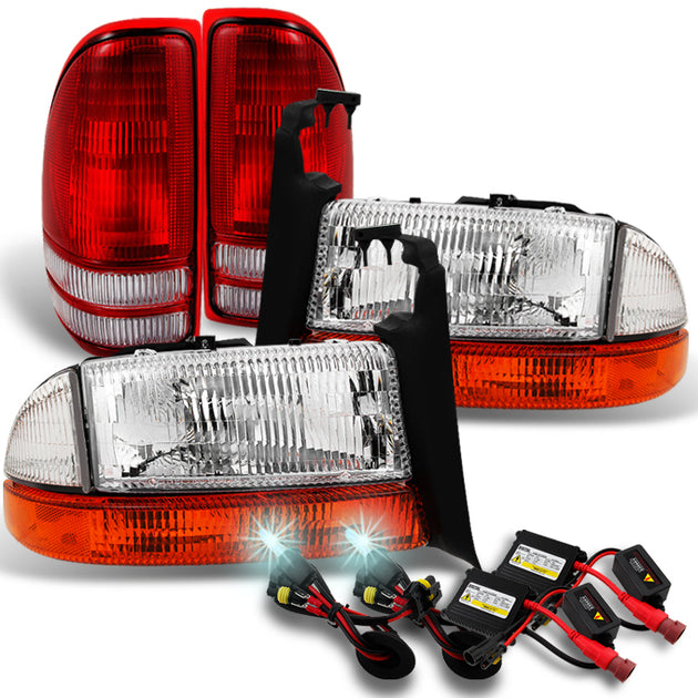 AKKON - For 1997-2004 Dodge Dakota Pickup | 1998-03 Durango SUV Textured Len Headlights Set + Red Tail Lights + 8000K HID Kit