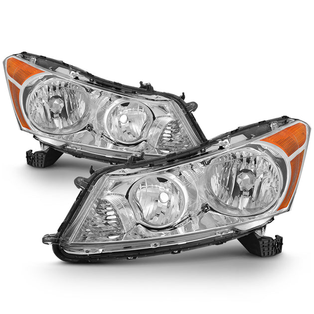 AKKON - For 2008 2009 2010 2011 2012 4-Door Sedan Honda Accord Chrome Clear Driver & Passenger Side Headlights lamps