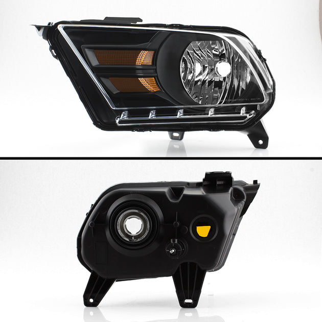 AKKON - For 2010-2014 Ford Mustang Halogen Model Black Housing Headlight Lamp Replacement L+R