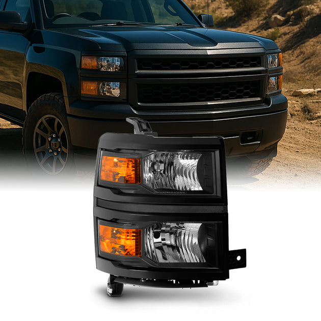 AKKON - For 2014 2015 Chevy Silverado 1500 Pickup Truck Black Bezel OE Replacement Headlight Lamp (Driver Left Side only)