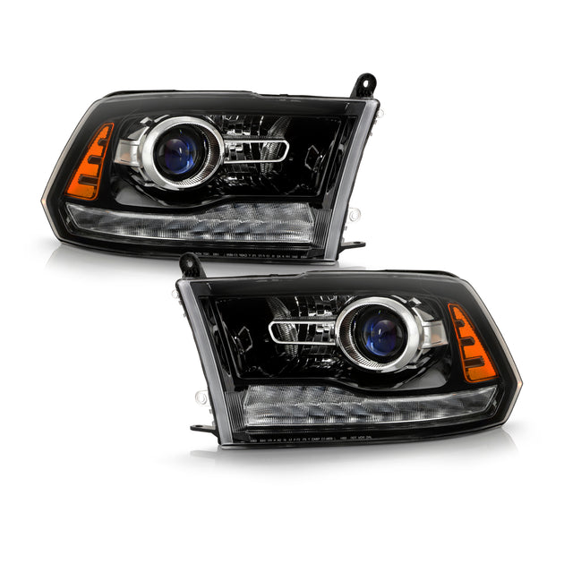 AKKON - Fits 2009-2018 Dodge Ram 1500 2500 3500 Full LED Trio Projector Black Headlights w/ Sequential Turn Signal Lamp