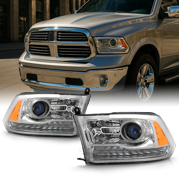 AKKON - For 2016-2018 Dodge Ram 1500 2500 3500 & 19-22 1500 Classic Projector LED Headlights OE Chrome Pair Housing