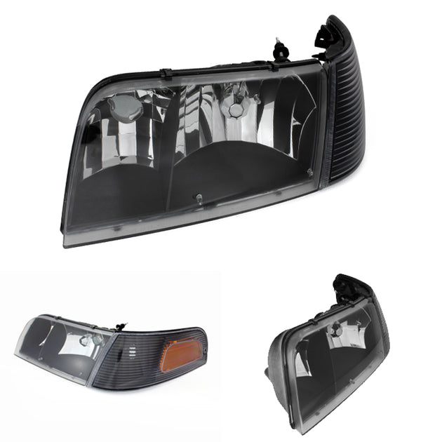 AKKON - For Black Bezel 97-03 F150 97-99 F250 LD Headlights Replacement + Corner Signal Light Lamps 4pcs Set