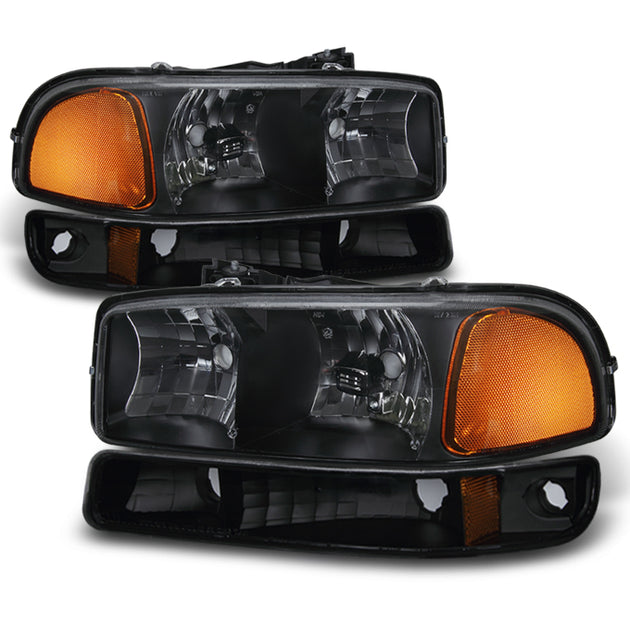 AKKON - For Black Bezel 99-06 Sierra 00-06 Yukon Headlights Replacement + Bumper Signal Light Lamps 4pcs Set
