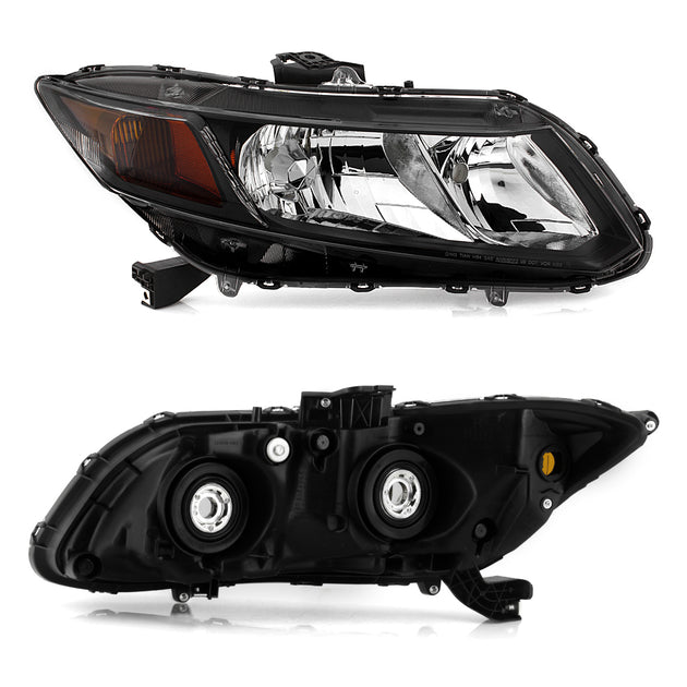 AKKON - For Black Headlights Fits Honda Civic 2012 2013 2014 2015 Sedan / 12 13 Coupe Driver Left+Passenger Right Side Pair