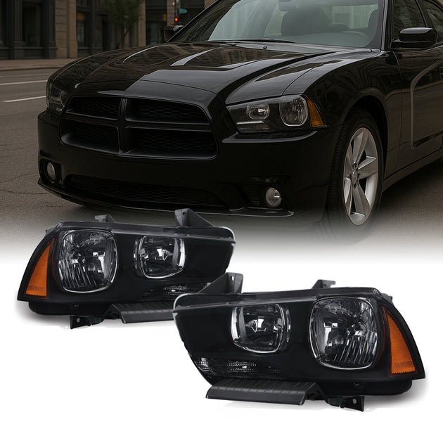AKKON - For Black Smoke 11-14 Dodge Charger Headlights Front Lamps Direct Replacement Pair Left + Right