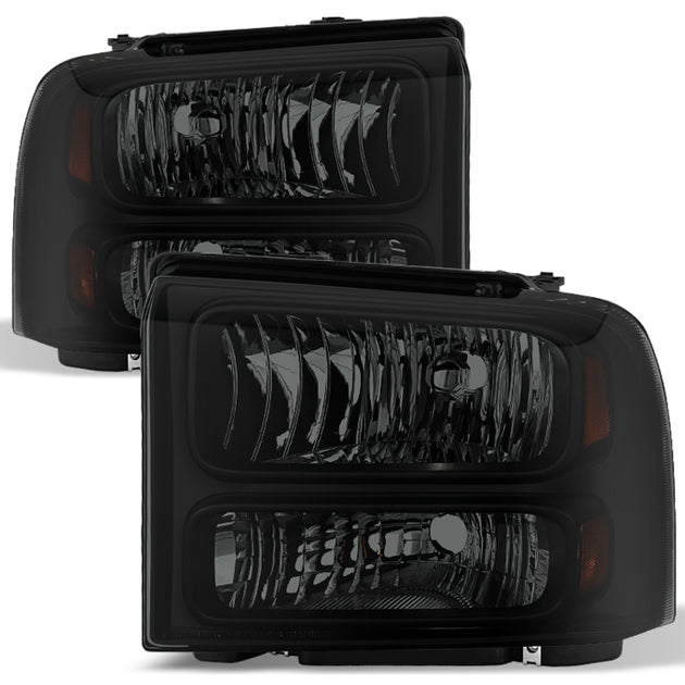 AKKON - For Black Smoke 05-07 Ford F-Series Superduty 05 Excursion Headlight Front Lamps Direct Replacement
