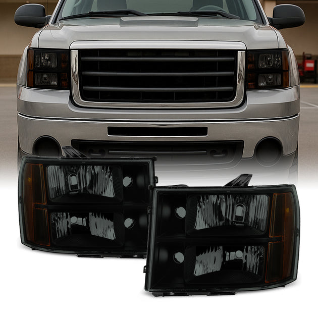 AKKON - For Black Smoke 07-13 Sierra 1500 07-14 Sierra 2500HD 3500HD Headlights Front Lamps Direct Replacement