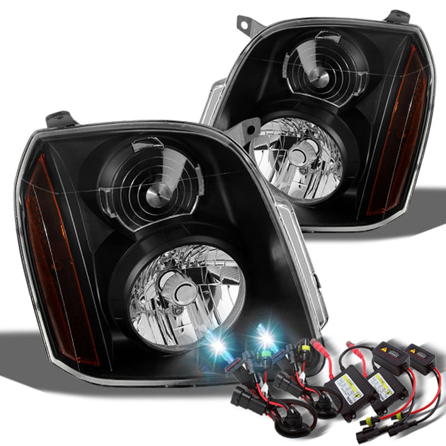 AKKON - For Black Housing 08-14 Yukon Hybrid | 07-14 Yukon XL Headlights + Slim Ballast 8000K Blue White HID