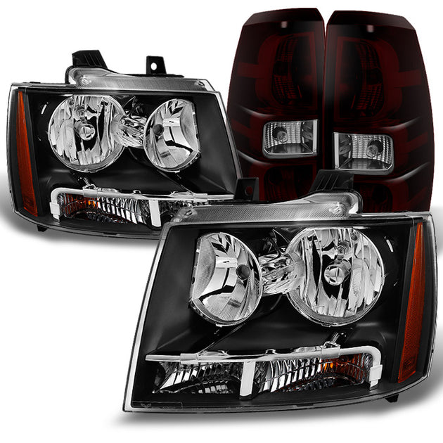 AKKON - For Chevy Avalanche 1500 Pickup Black Headlights + Dark Red Tail Lights Left & Right Pair Replacement