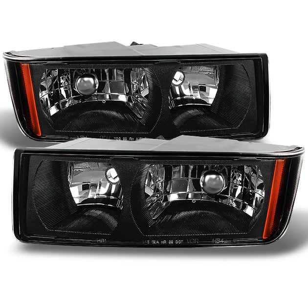 AKKON - For Chevy Avalanche Body Cladding Model Black Bezel Headlights Front Lamps Replacement Left + Right