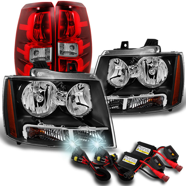 AKKON - For Chevy Avalanche 1500 Pickup Truck Black Headlights + Red Tail Lights Pair Set + Slim 6000K HID Kit