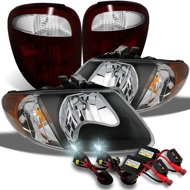 AKKON - For Caravan | Voyager | Town & Country Black Headlights + Dark Red Tail Lights + Slim 6000K HID Kit