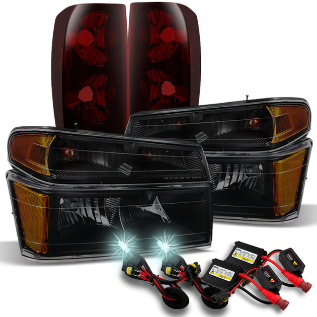 AKKON - For Chevy Colorado|GMC Canyon Black Smoke Headlights + Dark Red Tail Lights Pair + Slim 8000K HID Kit