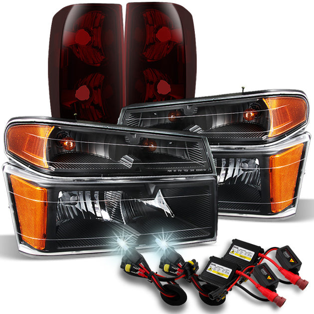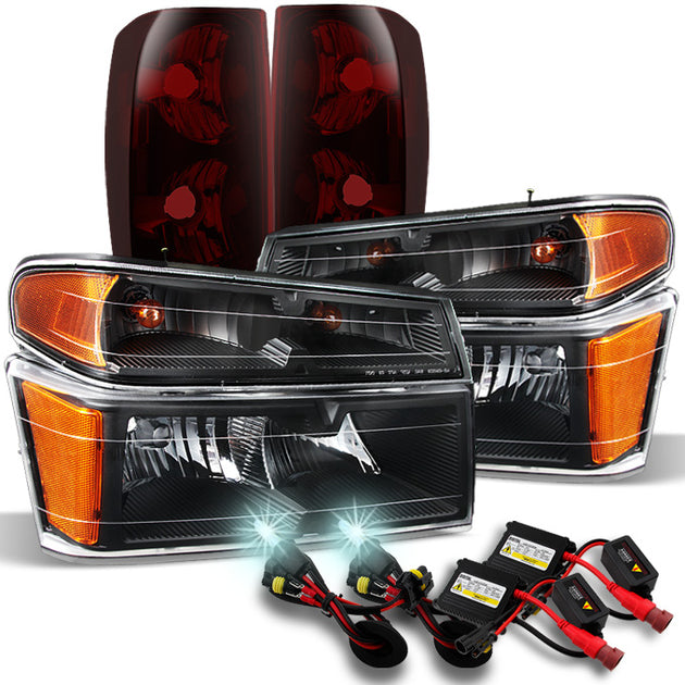 AKKON - For Chevy Colorado|GMC Canyon Black Headlights + Dark Red Tail Lights Pair Set + Slim 6000K HID Kit
