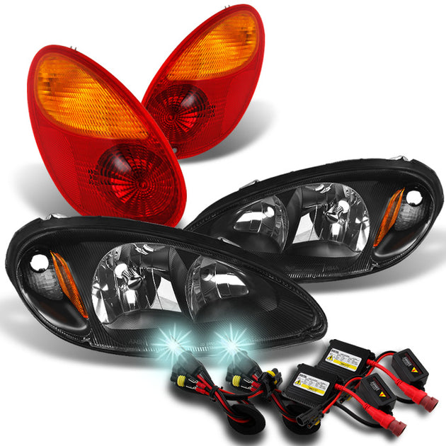 AKKON - For Chrysler PT Cruiser Black Head Lamps Headlights + Red Clear Tail Lights + Slim Ballast 8000K HID Kit