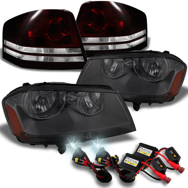 AKKON - For Dodge Avenger Smoked Headlights + Dark Red Tail Lights Left & Right Set + Slim Ballast 6000K HID Kit