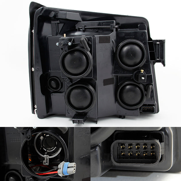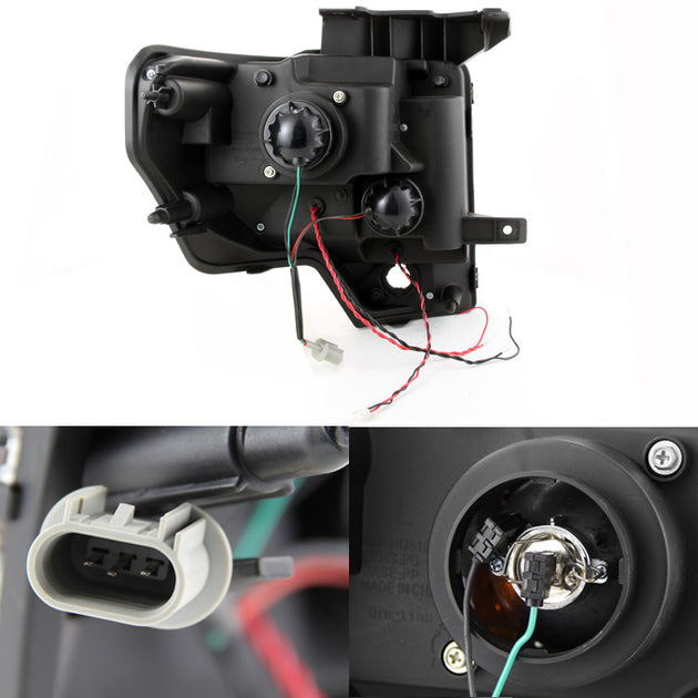 AKKON - For F150 Pickup Truck Black Bezel Dual Halo Ring DRL Daylight LED Projector Headlights Replacement Pair