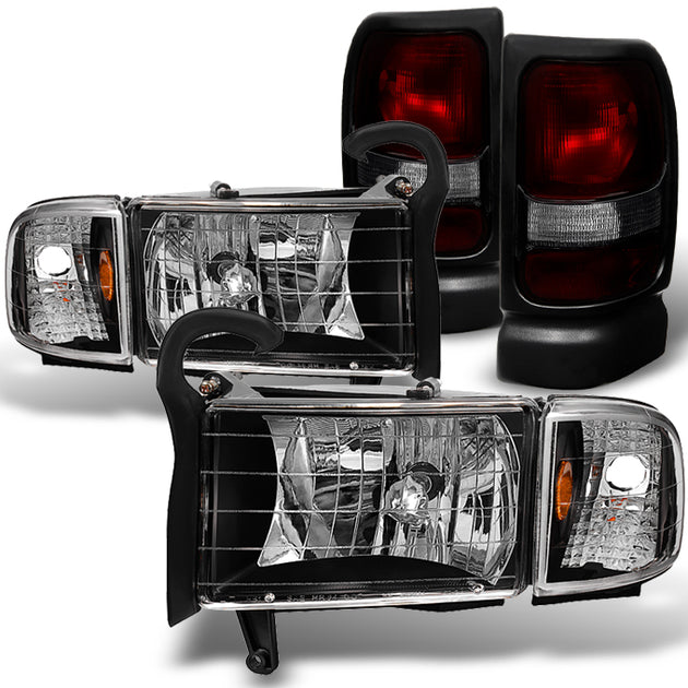 AKKON - For Dodge Ram 1500 | 2500 | 3500 Black Headlights + Dark Red Tail Lights Left & Right Pair Replacement