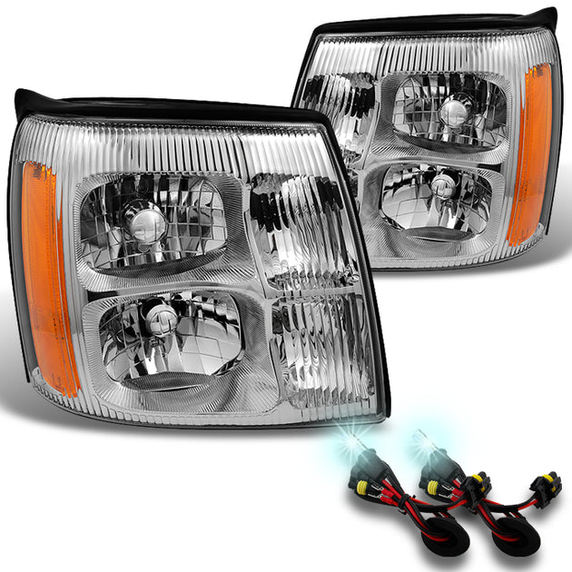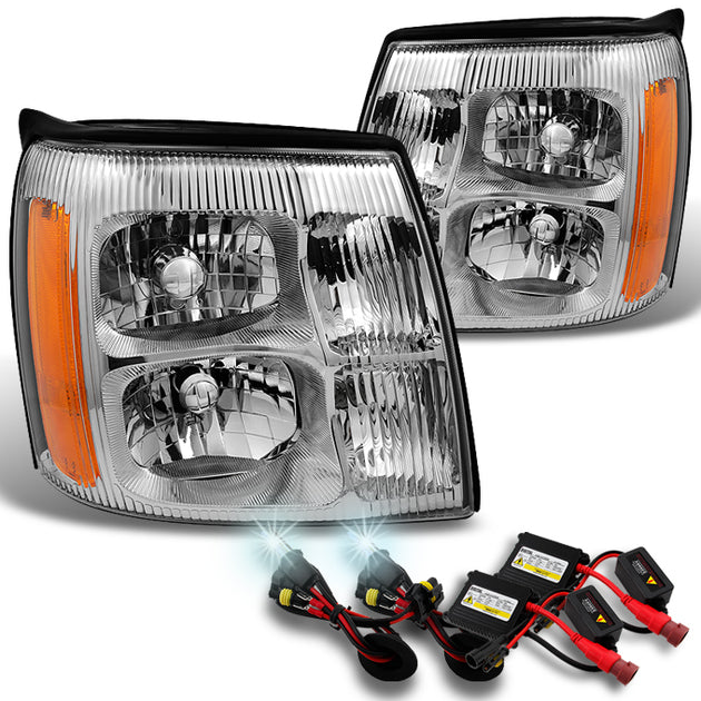 AKKON - For Escalade Chrome Clear Halogen Type Headlights Replacement Pair + Slim Ballast 6000K White HID