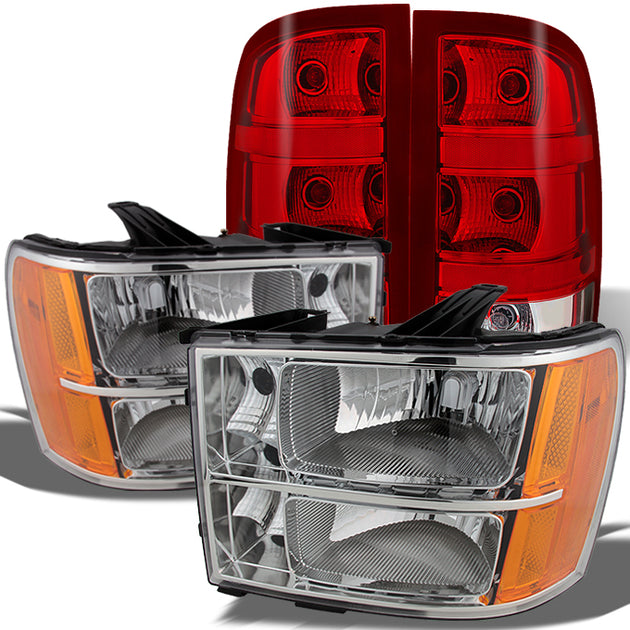 AKKON - For GMC Sierra 1500 | 2500 Headlights Head Lamps Replacement Pair + Red Clear Tail Lights Combo Sets