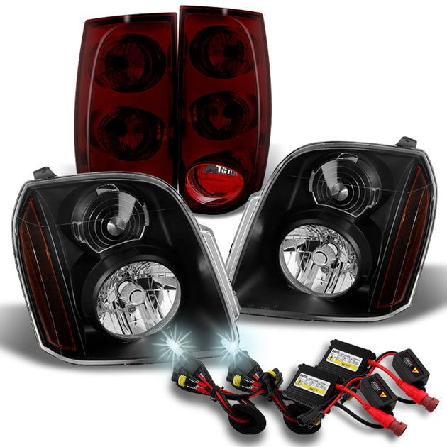 AKKON - For GMC Yukon XL 1500 | 2500 Black Headlights + Dark Red Tail Lights + Slim Ballast 6000K White HID Kit