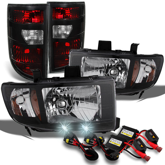 AKKON - For Honda Ridgeline Pickup Black Headlights + Dark Red Tail Lights + Slim Ballast 6000K White HID Kit