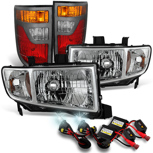 AKKON - For Honda Ridgeline Pickup Clear Headlights + Red Amber Tail Lights + Slim Ballast 6000K White HID Kit