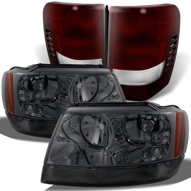 AKKON - For Jeep Grand Cherokee SUV Smoked Headlights + Dark Red Tail Lights Left & Right Replacement Pair Set