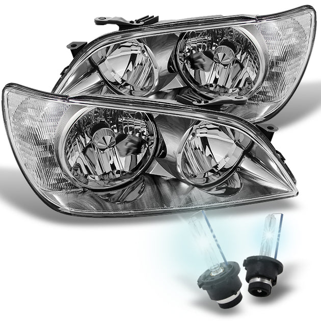 AKKON - For Lexus IS300 Altezza AS300 JCE10 Chrome Clear Headlights Replacement + 6000K White HID-D2S HID Bulbs
