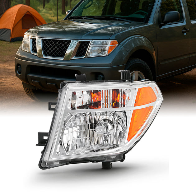 AKKON - Left Driver Side Chrome Headlight Fits 2005-2008 Frontier 2005-2007 Pathfinder [Halogen Models] Replacement