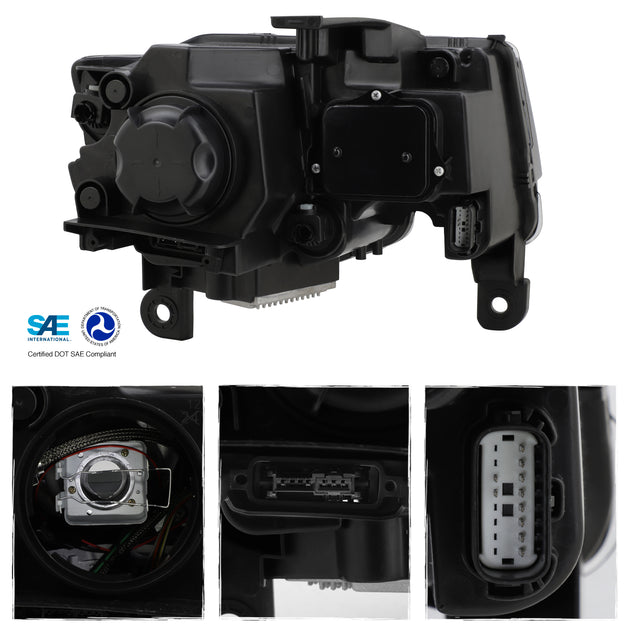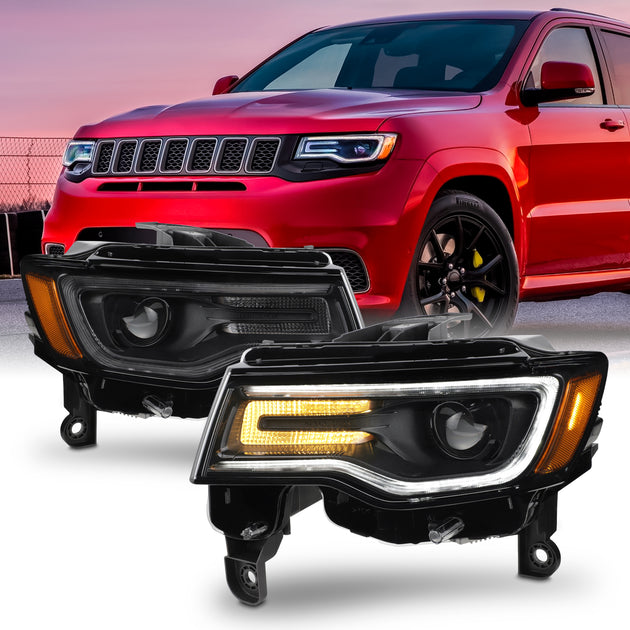 AKKON -Fits 2017-2021 Jeep Grand Cherokee HID/Xenon Type Black Bezel Headlights Pair w/ Auto Leveling LED Running Signal
