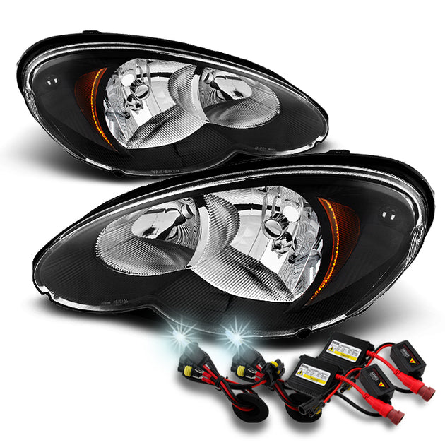 Fit 06-10 Chrysler PT Cruiser Replacement Black Headlights + 6000K White HID