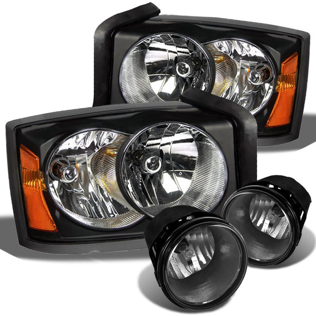 Fits 05-07 Dakota Black Bezel Headlight Replacement + Smoke Fog Lights w/Bulbs