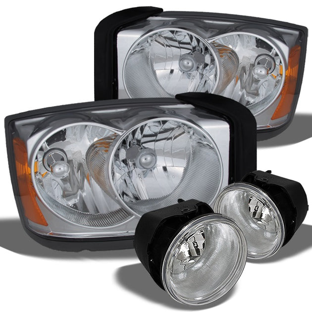 Fits 05-07 Dakota Chrome Clear Headlight Replacement + Smoke Fog Lights w/Bulbs