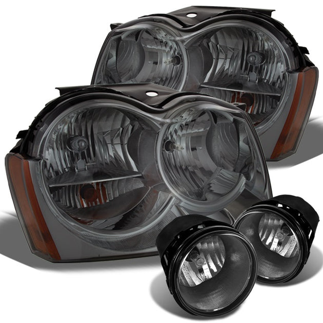 Fits 05-07 Grand Cherokee Smoke Smoked Headlights Replacemnet + Smoke Fog Lights