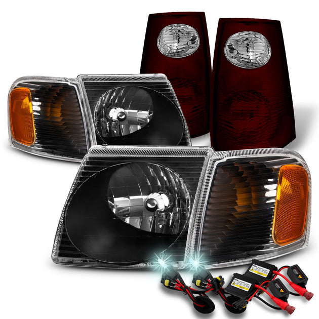 For 01-05 Ford Explorer Sport Trac Headlight+Corner+Dark Red Tail light+6K HID