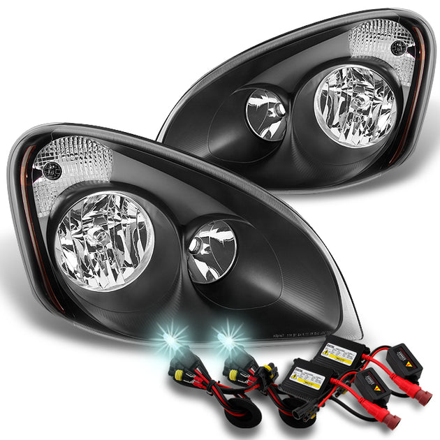 For [Black] 2008-2016 Freightliner Cascadia Halogen Type Left & Right Side Headlights + 8000K HID Kit