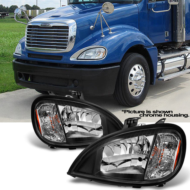 For [Black] 2004-2013 Freightliner Columbia semi-trailer Truck Driver Left & Passenger Right Headlights