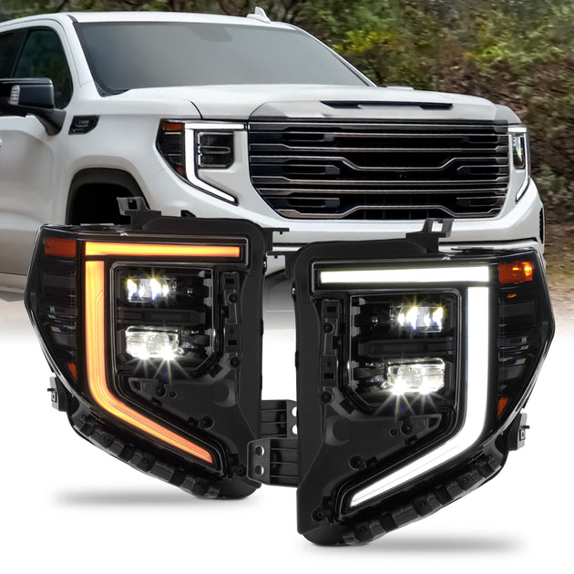 AKKON - Fit 2022 2023 2024 GMC Sierra 1500 SLT | Denali Full LED DRL Turning Signal (Black & Chrome Bezel) Projector Headlight OE Style Assembly
