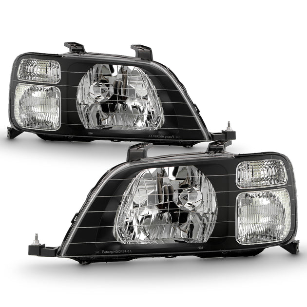 AKKON - Fits 1997-2001 Honda CRV Black Headlights Headlamp Pair Driver Left+Passenger Right Replacement 98 99 00