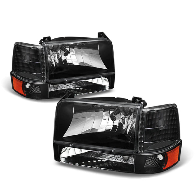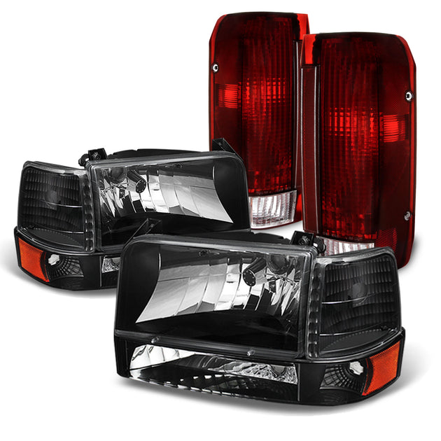 AKKON - Fits 1992-1996 Ford F150 F250 F350 Bronco Pickup Truck Black Headlights + Dark Red Tail Brake Lamps Pair Left+Right